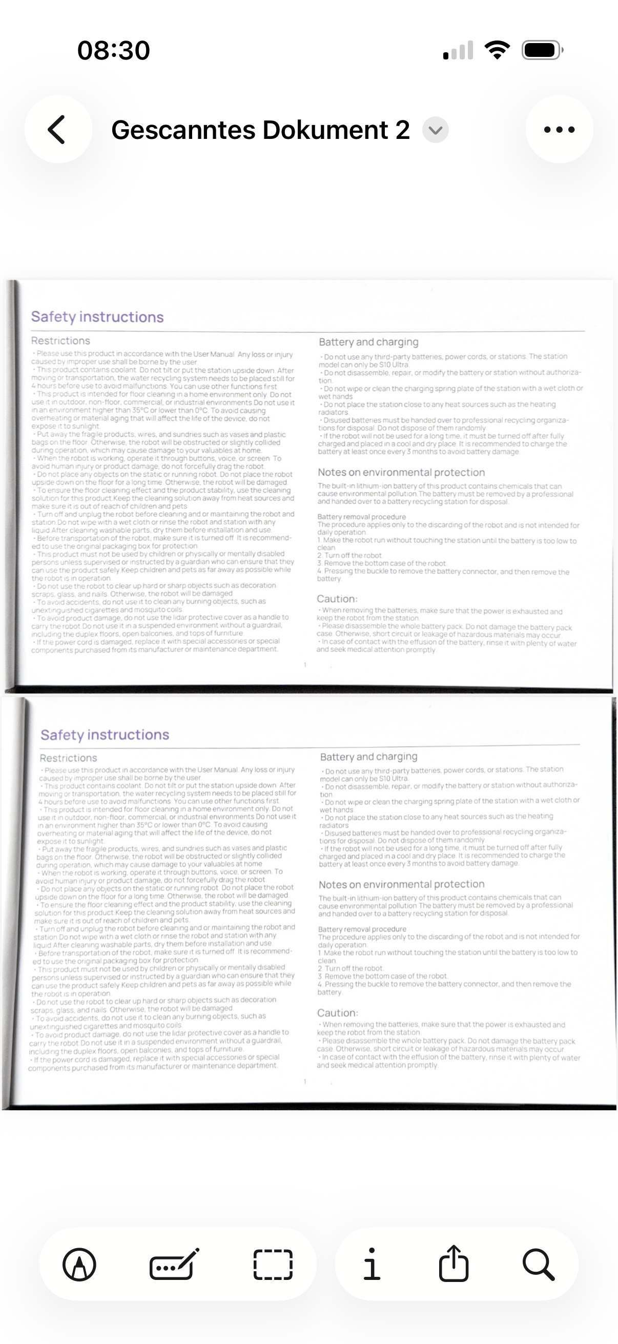 Alle Scans erscheinen unten als kleine Vorschaubilder, zwischen denen du hin- und herwischen kannst.